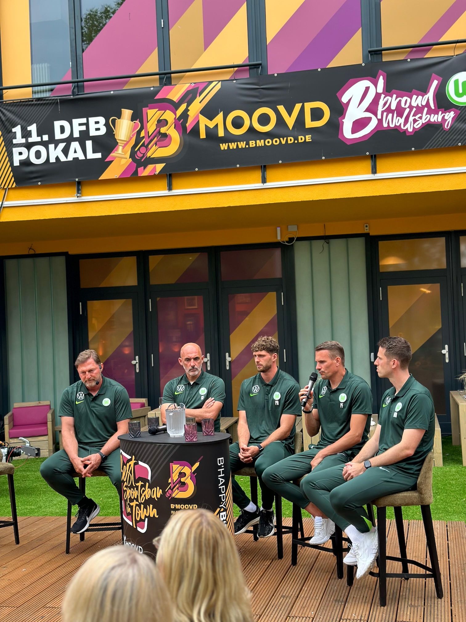 Vor dem ersten Pflichtspiel der neuen Saison war VfL-Trainer Ralph Hasenhüttl mit seinem Trainerteam bei einem Fantalk in der Wolfsburger Sportsbar B‘moovd zu Gast.
