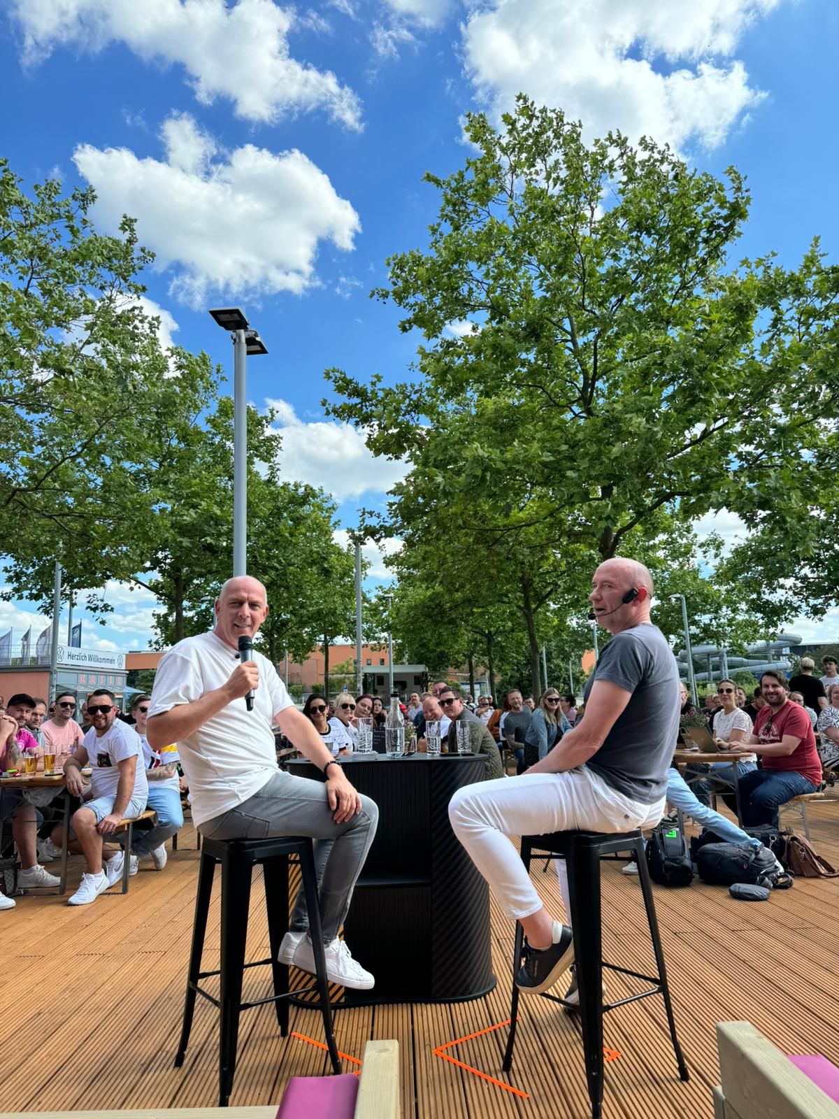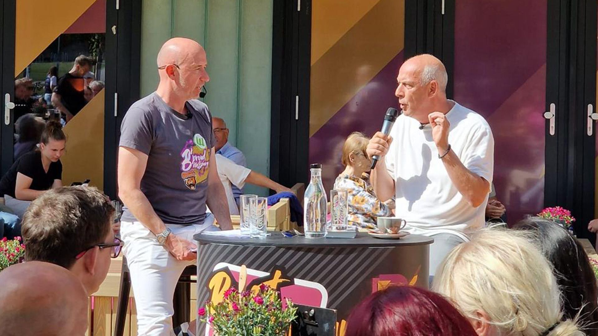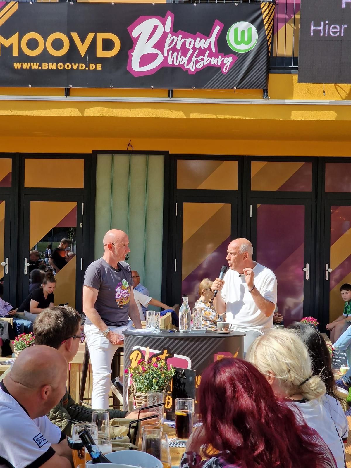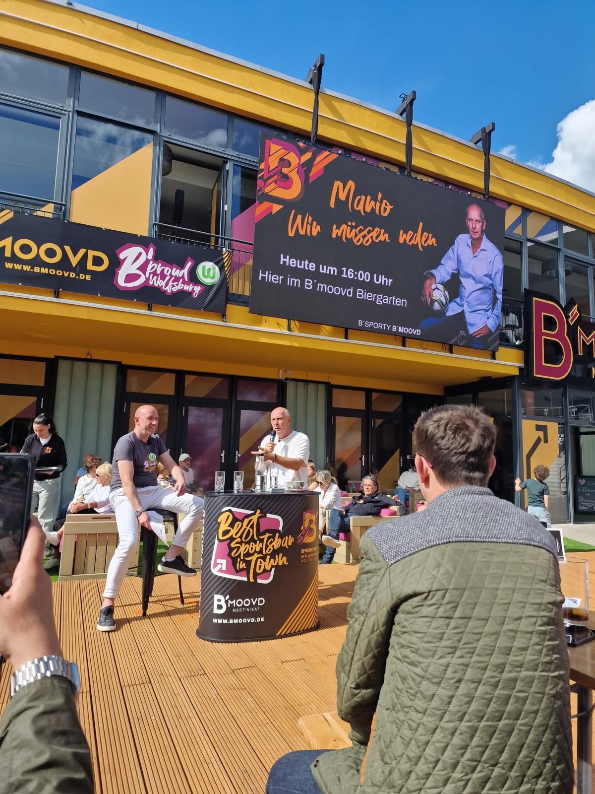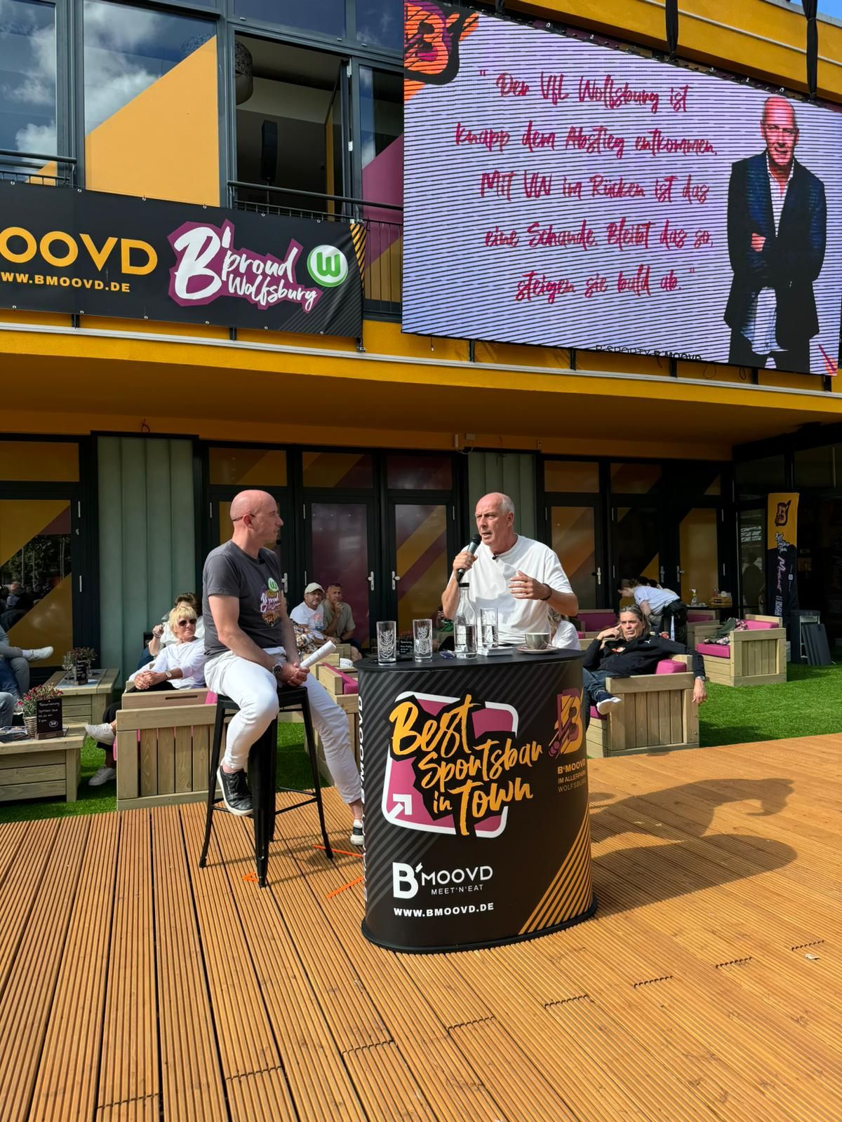 Die Gäste hatten sichtlich Spaß an Baslers Geschichten und nahmen seine Worte mit Freude auf. Besonders erfreut zeigte sich Basler über die herzliche Aufnahme durch die Wolfsburger Fans: „Am Ende des Tages habe ich mich hier richtig wohl gefühlt. Eine schöne EM und bis bald mal wieder im schönen B´moovd Biergarten!“