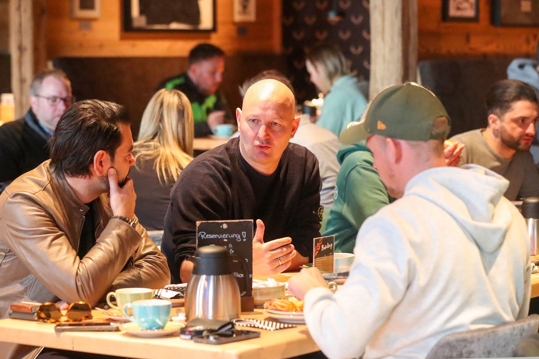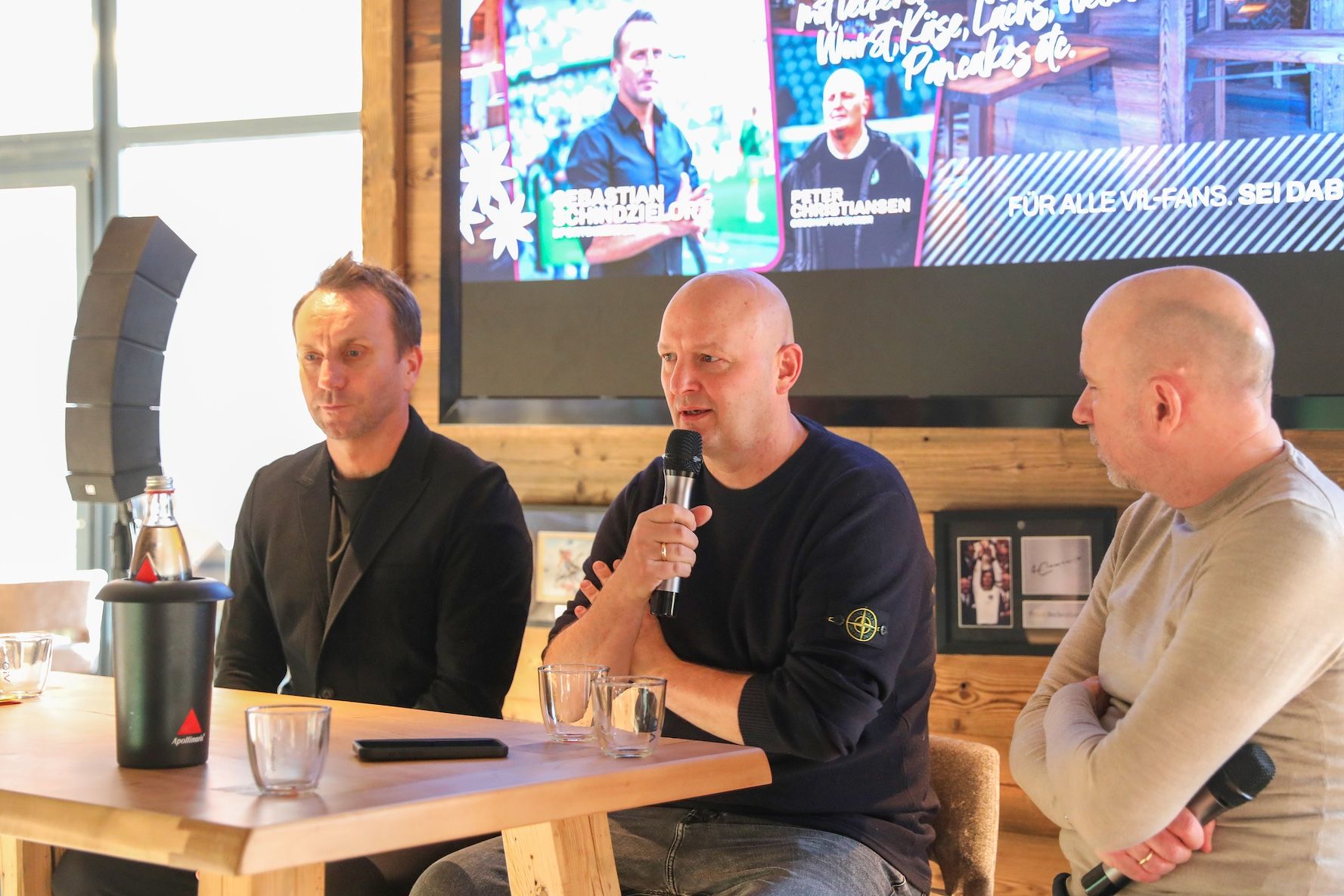 Peter Christiansen und Sebastian Schindzielorz beim Fan-Frühstück in der SportsAlm