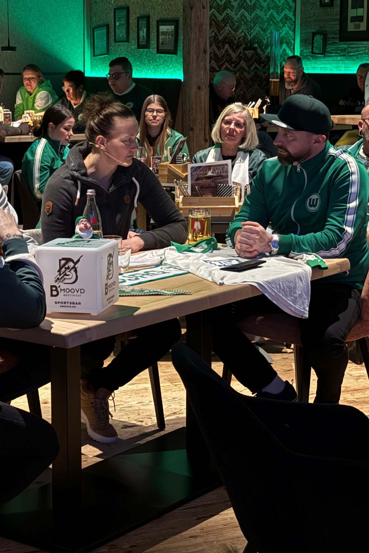 Gemeinsam mit den Jungs von RetortenTV wurde gefachsimpelt, gelacht, gefeiert und diskutiert. Unser Live-Talk war dabei ein besonderes Highlight. Zu Gast waren Almuth Schult, ehemalige deutsche Fußballnationalspielerin, sowie Peter Kleeschätzky, ehemaliger VfL-Spieler. Beide sorgten mit spannenden Einblicken, ehrlichen Worten und viel Charme für unvergessliche Momente auf der Bühne.