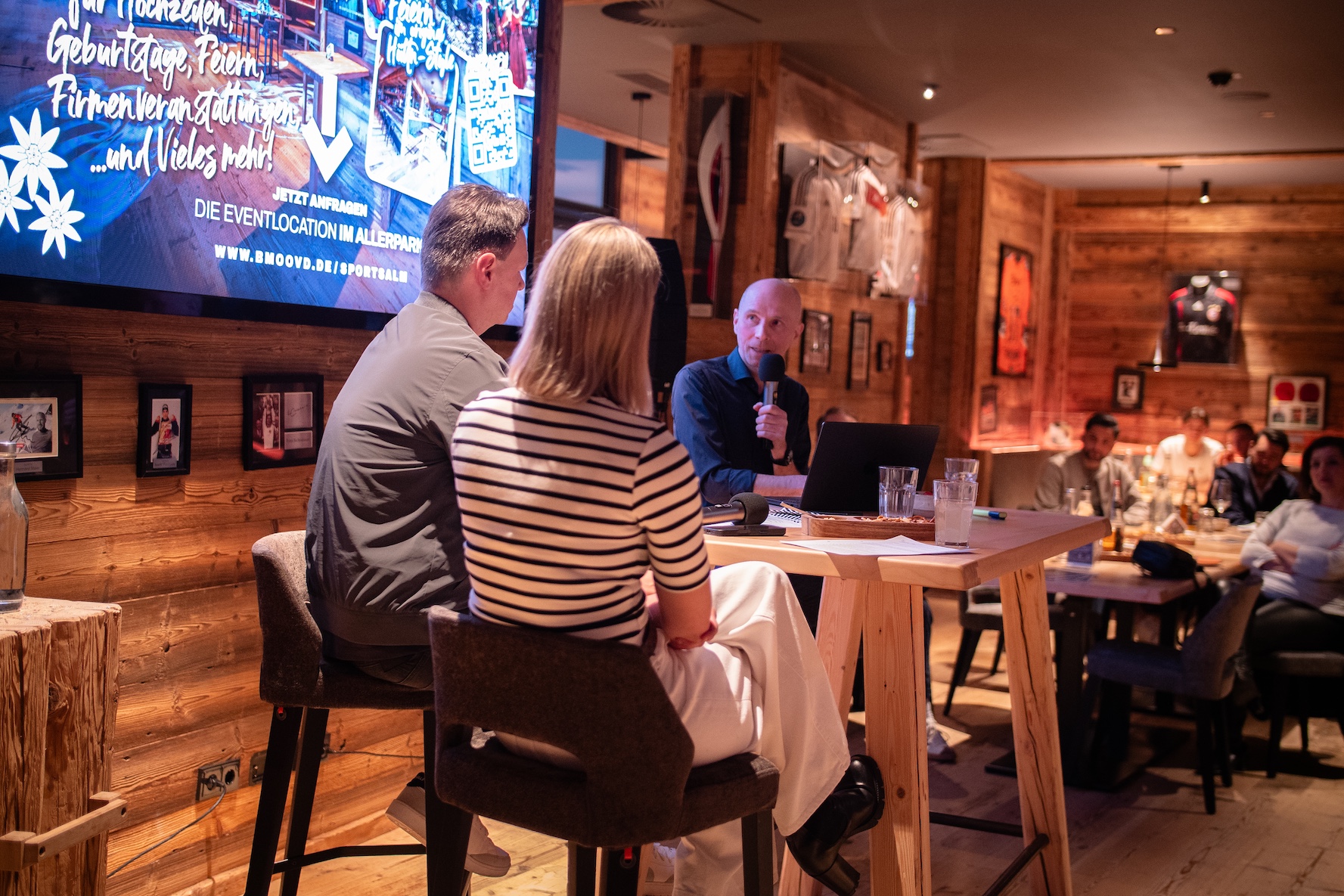Frank gab in der exklusiven Atmosphäre der B`moovd SportsAlm Einblicke in die mehr als 30jährige Unternehmensgeschichte. Vom ersten Zoofachhandel am Kaufhof bis zu den erfolgreichen Franchise-Partnerschaften mit Fressnapf und den heute rund 40 Filialen, die die Unternehmensgruppe betreibt. Er berichtete vom Aufbau der Immobiliensparte mit der Eröffnung des Eastgate in der Wolfsburger Dieselstraße im vergangenen Jahr und natürlich von der Vision hinter der Sportsbar B`moovd im Allerpark.